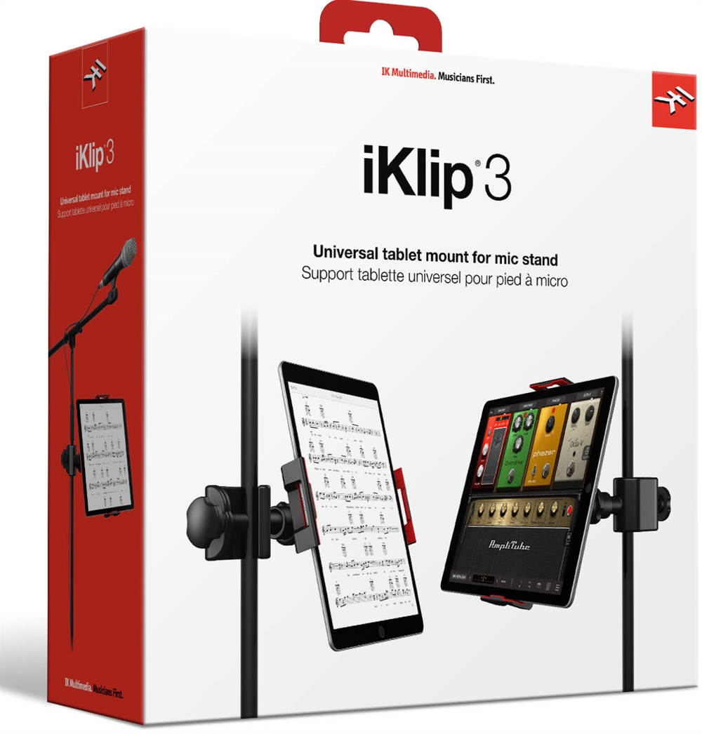 Med iKlip 3 har du en let og pålidelig måde at montere en iPad eller anden tablet på dit mikrofonstativ. Klip 3 er lavet af robust termoplast, hvilket gør den mere robust, lettere og mere bærbar end andre produkter. Den har store, holdbare gummigreb, der tåler mange års hårdt brug uden at knække.
