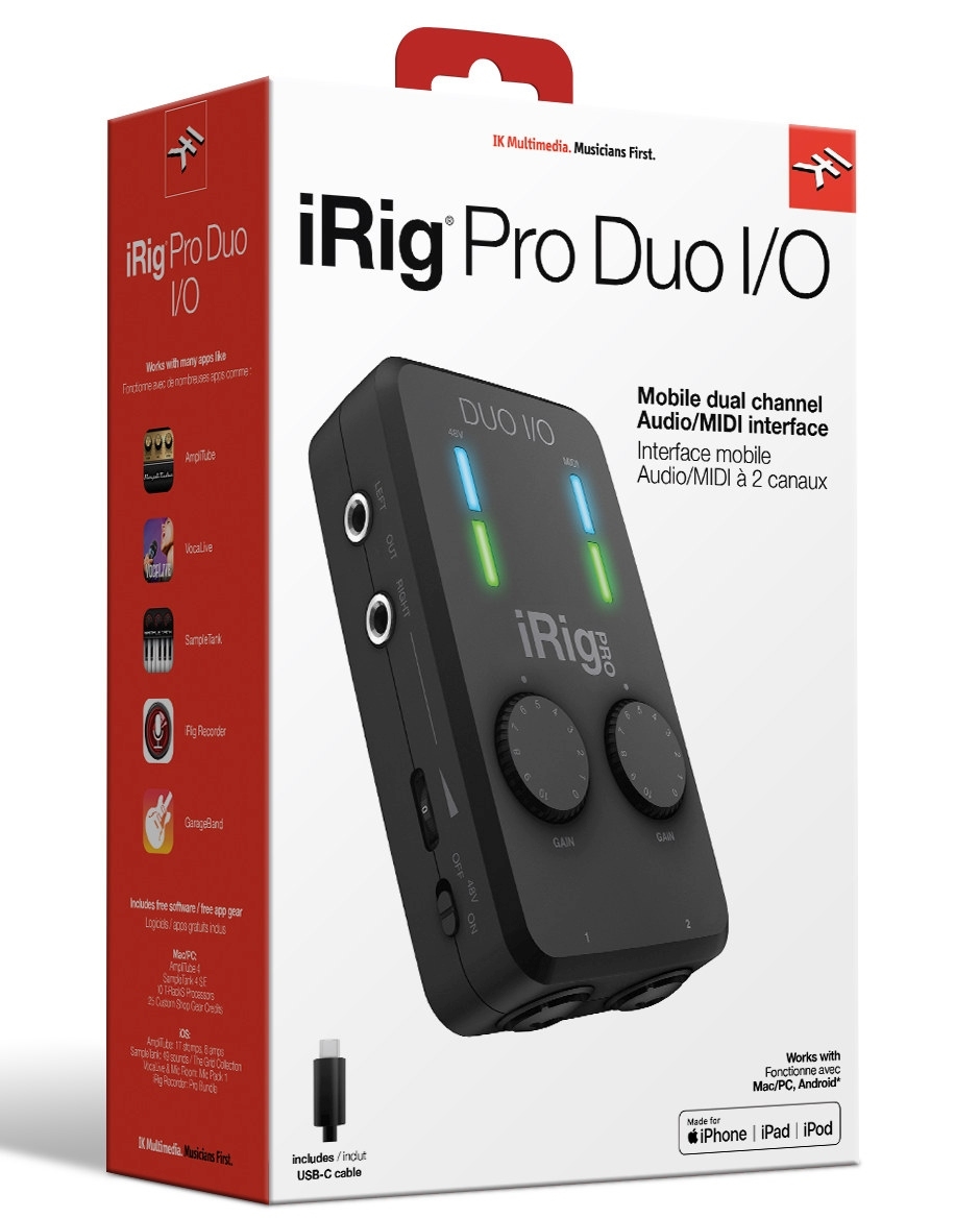 Uanset om du optager musik, videoer, podcasts eller livestreams, skal du nogle gange bare ud af studiet. Om du er hjemme eller på ferie, giver iRig Pro Duo I/O dig alt, hvad du behøver for at optage musik og lyd i høj kvalitet, i en ultra-bærbar, let transportabel boks. Med convertere og indgangstrin i topklasse og fuld MIDI I/O, samt mulighed for både batteridrift og PSU, der også kan føde din mobile enhed, er iRig Pro Duo I/O et ægte musikstudie i lommeformat.