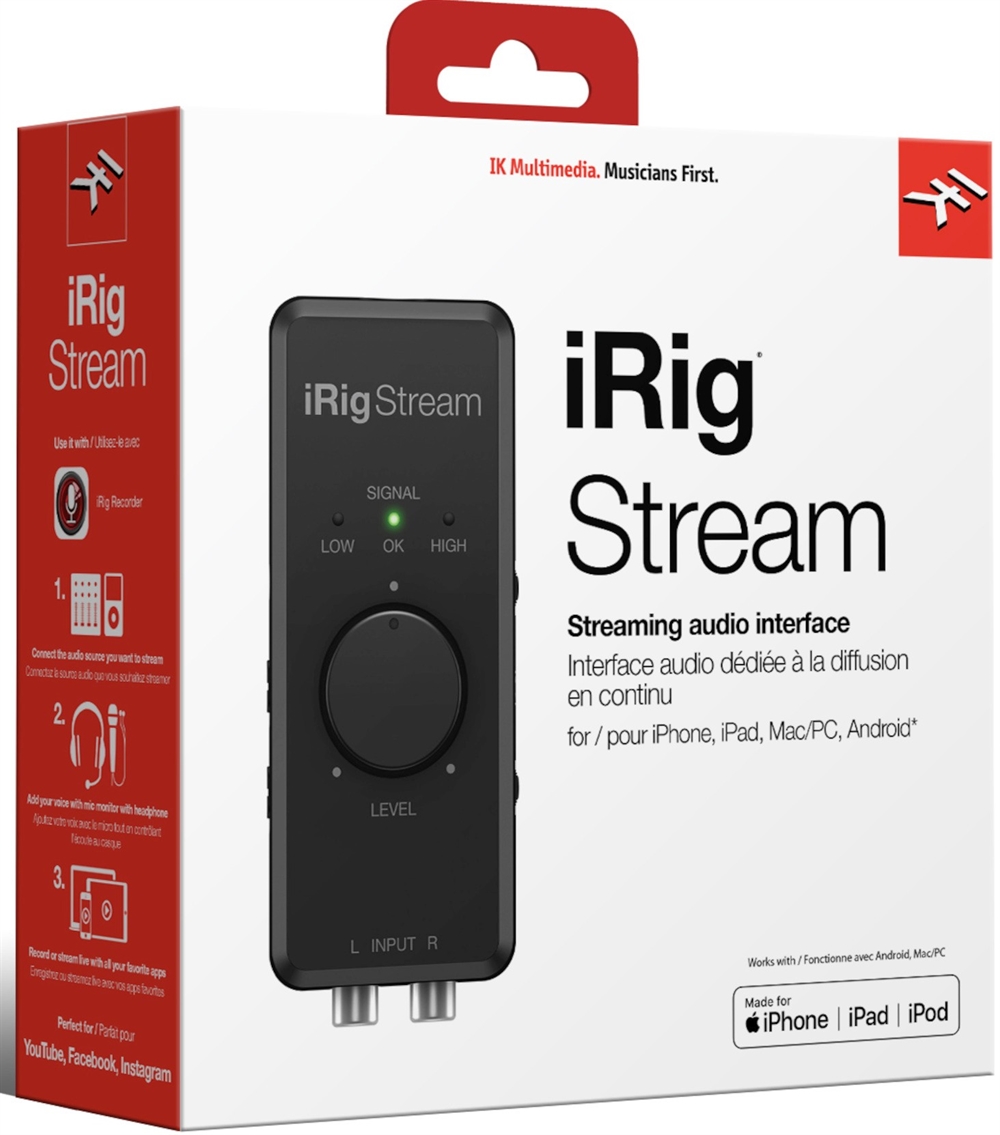 Nutidens mobile enheder gør det nemmere end nogensinde at dele din musik med verden. Fra Instagram-livestreams til YouTube-videoer, SoundCloud-playlister og mere, sociale medier og smartphones er blevet et nøgleaspekt for mange musikere, der bliver hørt og rammer deres fans på nye måder. iRig Stream lader dig forbinde instrumenter, mixere og mere til din iPhone, iPad, Android-enhed og Mac/pc, med praktiske funktioner specielt målrettet til brug på nutidens mest populære platforme. Uanset om det er mono eller stereo, live-afvikling eller et eksisterende mix, giver iRig Stream dig forbindelse til alle dine yndlingsapps, så du kan ramme dine lyttere med det samme, uanset hvor du er.