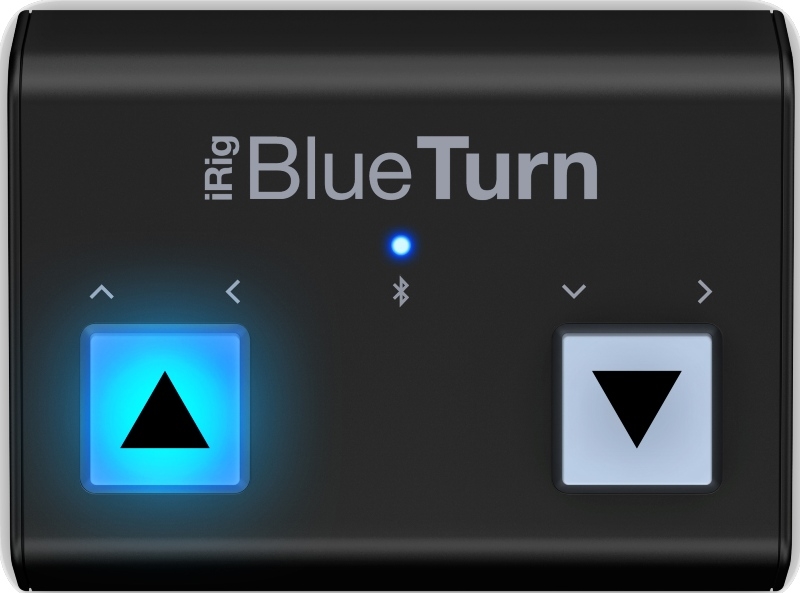 Nu er det blevet meget nemmere at bruge en iPhone, iPad, Mac eller Android på scenen til sætlister og noder! iRig BlueTurn er en Bluetooth-pageturner med lydløse, baggrundsbelyste gummiknapper, der nemt lader dig bladre og scrolle gennem materiale håndfrit. Hvis du gerne vil strømline sidevendingsprocessen for noder, sangtekster, dias, faner eller andre dokumenter, er iRig BlueTurn svaret.