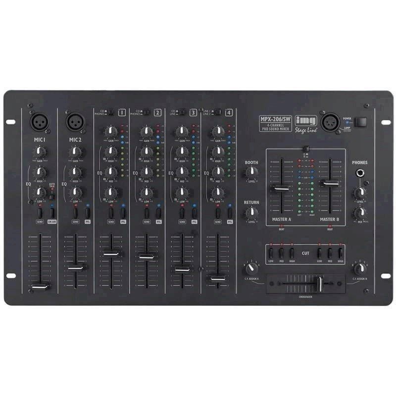 Her er du: Disconetto » LYD » Mixere » DJ Mixer IMG 6-kanals Mixer. MPX-206/SW På lager På lager, 2-4 dage Bedømmelse for IMG 6-kanals Mixer. MPX-206/SWProduktet er endnu ikke bedømt 5.149,00DKK ved 1 stk. Vis uden moms Trustpilot 6-kanals stereomixer med 4 stereoindgangskanaler, hver med separat LED-niveauindikator, skiftbar linje/phono (kanaler 1-2) og linje/linje (kanaler 3-4). 6-kanals stereomixer 4 stereoindgange, med separat LED level display, line/phono (kanal 1-2) og line/line (kanal 3-4), gain, 3-vejs equalizer med cut funktion 1 DJ mikrofonkanal med automatisk talkover og 1 gæstemikrofonkanal, begge med gain og 2-vejs tonekontrol Stereoeffekt (send/return) 2 masterudgange med beat LED og 1 booth udgang 1 record udgang LED level display kan omstilles mellem de to master udgange Crossfader med kanalvælger 1-4 og cut switch funktion til at undertrykke høje frekvenser, mellemtone- og basfrekvenser Justerbar hovedtelefonudgang Fader start til stereoindgangene (kanal 1-4) Tilslutning for svanehalslampe GNL-404 eller GNL-405 No. of channels6No. of inputs12Mic input1.5 mV, 2 x 6.3 mm jackLine input150 mV, 3 x RCA L/RCD input150 mV, 3 x RCA L/RPhono input3 mV, 2 x RCA L/RTape (play)-Aux input-Insert input-Effect return135 mV, 1 x RCA L/RMaster output1 V/600 Ω, 1 x 3-pole XLR L/RRecord output300 mV/600 Ω, 1 x RCA L/RMonitor output1 V/600 Ω, 1 x RCA L/RBooth output-Aux output-Insert output-Effect send300 mV/600 Ω, 1 x RCA L/RControl room-Tape (rec)-Headphones≥ 8 Ω, 6.3 mm jackGooseneck lamp12 V/5 W, 4-pole XLRWiFi-USB-Frequency range20-20,000 HzTHD0.05%S/N ratio> 50 dBCrosstalk-Equalizer bass+15 dB, -30 dB/50 HzEqualizer midrange+15 dB, -30 dB/1 kHzEqualizer treble+15 dB, -30 dB/10 kHzequalizer-Talkover-12 dB, switchablePhantom power-CrossfaderyesMedia player-Amplifier-Power supply∼ 230 V/50 Hz/14 VAMains voltage∼ 230 VMains frequency50 HzPower consumption, operation14 VAOperating voltage (possible alternative)-Power supply (possible alternative)-Admiss. ambient temp.0-40 °CWidth482 mmHeight266 mmDepth110 mmRack spaces, RS6Weight6.48 kg Varenr.: 202480 Vi anbefaler Trådløs mikrofonsæt - TXS-611SET - IMG STAGE LINE DKK 1.869,00 Stel skilletrafo - FGA-30M DKK 177,00 Line/Phono Adaptor - LPC-1 DKK 449,00 Svanehalsmikrofon - DMG-450 - IMG STAGE LINE DKK 389,00 Aktiv Line Array max 1000W - IMG L-RAY/1000 DKK 18.749,00 IMG STAGE LINE PA-forstærker 2x500W - STA-1000 DKK 4.769,00 PSUB-12AKA, Aktiv subwoofer 12" m. amp til sat - IMG STAGE LINE DKK 7.969,00 PSUB-15AKA, Aktiv subwoofer 15" - IMG STAGELINE DKK 12.189,00 Kunder købte også IMG Stageline - STA-500 forstærker på 600watt MAX DKK 2.019,00