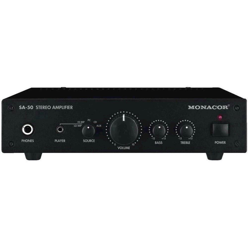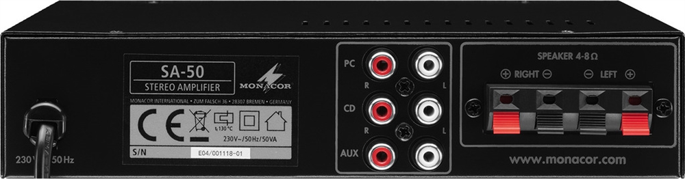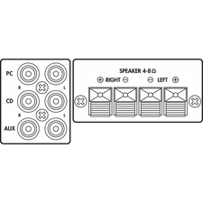 | Connections | 1 x RCA L/R (PC), 1 x RCA L/R (CD), 1 x RCA L/R (aux), 1 x 3.5 mm jack (player), 4 x spring-load. speaker term. (speakers) |