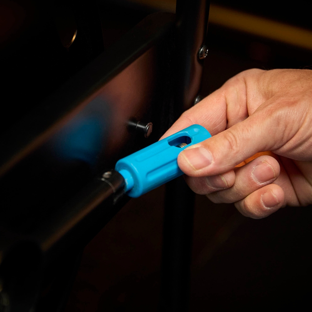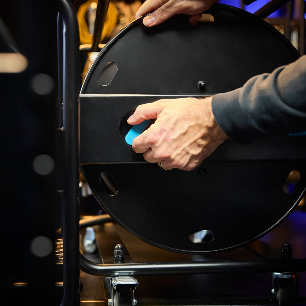To prevent the cable from slipping, we have created slots on the sides of the drum to allow the cable to be attached with a Velcro strip. In addition, a rotating parking brake ensures a secure hold during use.