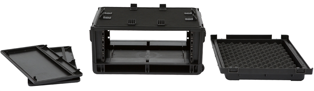 and a specially molded exterior pattern that stacks securely with all SKB Roto Racks for maximum transport convenience.
