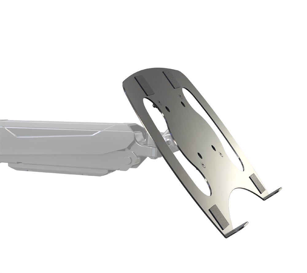 Useful laptop tray suitable for various monitor mounts. The sturdy steel plate can be combined with connectors of VESA sizes 75/75 and 100/100 and is designed for a load of up to 8 kg. The mounting material is included in the delivery.