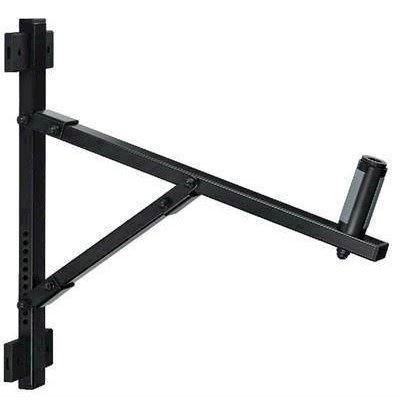 Wall bracket for PA speaker systems, with patented expanding mandrel for a secure and low-resonance connection between wall bracket and PA speaker system via movable plastic splints.- Black lacquered special square steel tube design