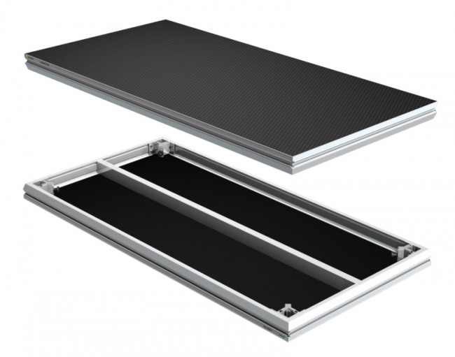 Med dens solide aluminiumsramme og skridsikre overflade er denne podie ideel til brug i forskellige scenekonstruktioner.