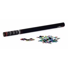 Konfettirør med metallic konfetti Konfettirør er populære som aldrig før. Det skinnende konfetti der nærmest daler ned fra himlen, giver en fed effekt både på scener og i mere private sammenhænge. Vores håndholdte konfettirør er i professionel kaliber, men kan bruges af alle. De indeholder langt mere konfetti og skyder meget længere, end de produkter man finder i festbutikker på nettet, varehuse mv. Vores konfettirør skyder op til 12 meter, og jo længere rør du vælger, jo mere konfetti indeholder røret og jo længere kan det skyde. Vores konfettirør fungerer ved hjælp af en lille trykbeholder, og indeholder således ikke krudt eller lignende. Metallic konfetti er primært beregnet til indendørs brug, da det ikke er biologisk nedbrydeligt konfetti. Til udendørs brug anbefaler vi papirs konfetti som er biologisk nedbrydeligt. Metallic konfetti har også den fordel, at det ikke smitter af på gulvet når det bliver vådt, hvilket papirkonfetti godt kan gøre. Vores metallic konfetti er ikke-brandbart og smitter ikke af, selvom det måtte blive vådt. Sådan bruges vores håndholdte konfettirør: 1. Fjern folien fra toppen af røret 2. Hold et fast greb om rørets øverste halvdel med den ene hånd 3. Peg røret skråt op i luften (skyd aldrig direkte mod personer) 4. Hold fast i den nederste del af røret med den anden hånd, og drej mod urets retning 5. Nyd synet af det flotte konfetti der bliver skudt ud, og derefter daler langsomt ned |