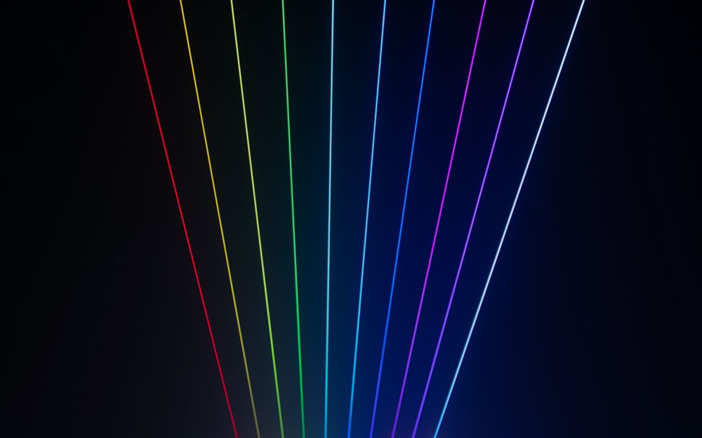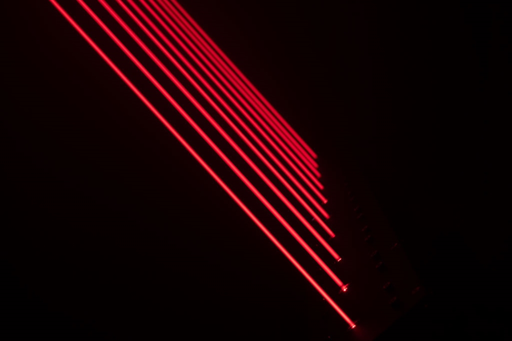 Laserbar med 10 stråler i RGB (rød, grøn og blå)