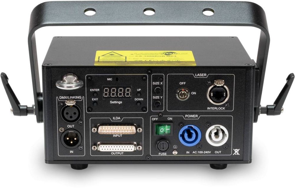 Laserworld CS-1000RGB MK4 er en kraftfuld analog moduleret diode-laser, der leverer et imponerende udbytte i forhold til dens størrelse og pris. Den kan f.eks. lave stråler, bølger, tunneler og basal grafik. Med et output på op til 1000 mW og flere kontrolmuligheder er den ideel til bl.a. mindre mobildiskoteker og ungdomsklubber.