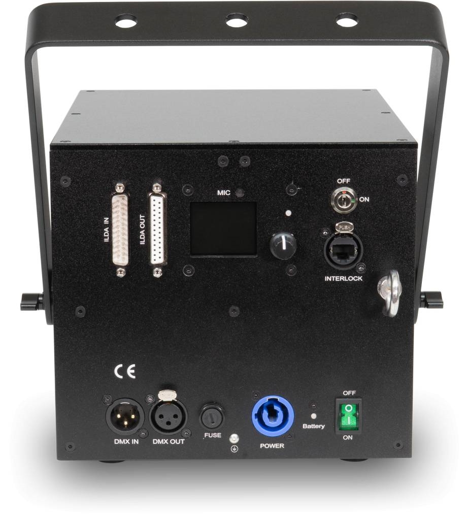 The Laserworld CUBE 7 includes safety features such as a key switch, an interlock interface, and a power switch.