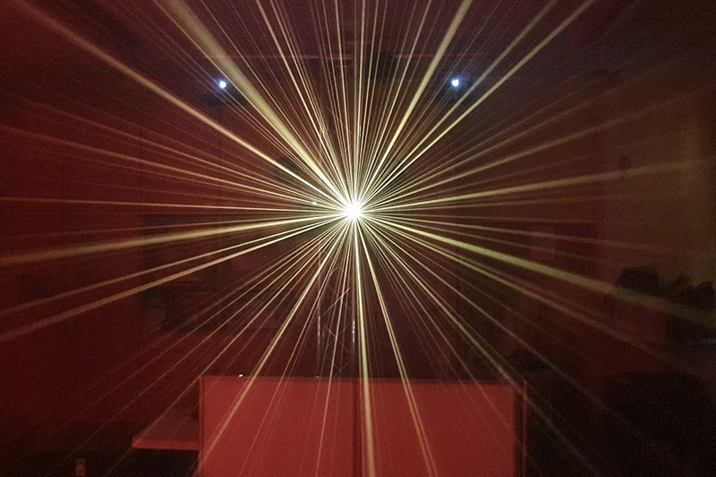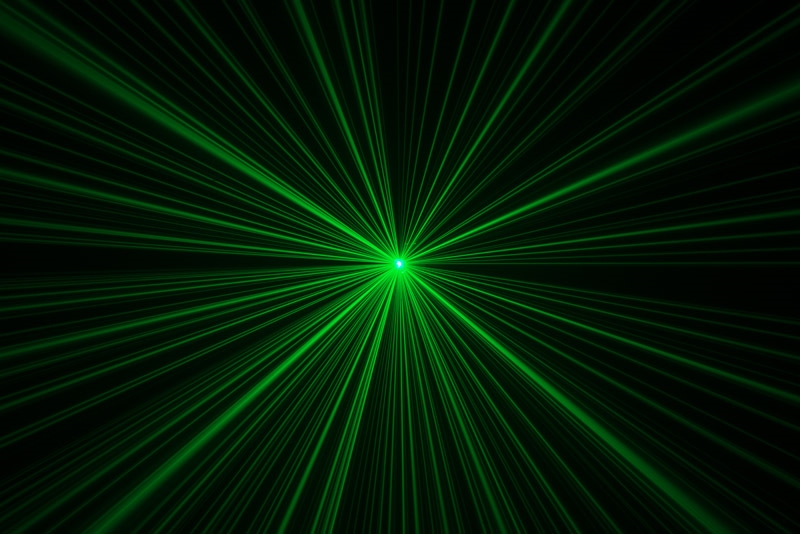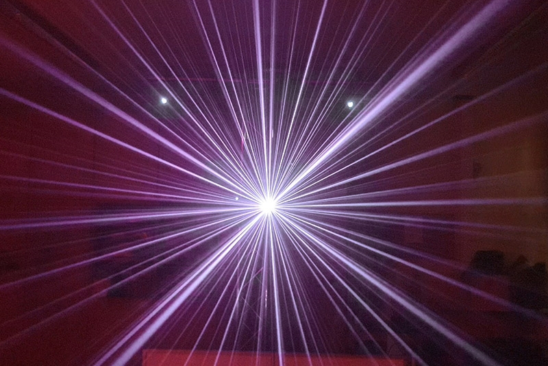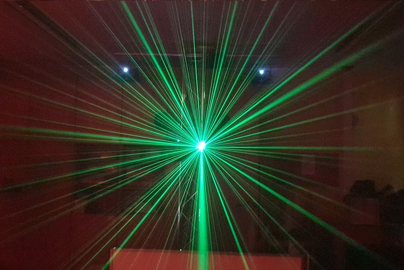 På trods af sine flotte og tydelige stråler, er dette en Klasse 2 laser, hvilket gør den langt sikrere end mange kraftigere lasersystemer.