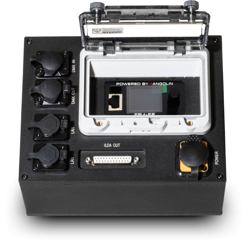 Laserworld FB4 MAX² runs the laser control software of Pangolin Quickshow and offers the possibility to control the show laser system through ILDA or DMX or by the onboard SD-memory. Furthermore it is possible to connect additional laser projectors via ILDA through and ILDA in.