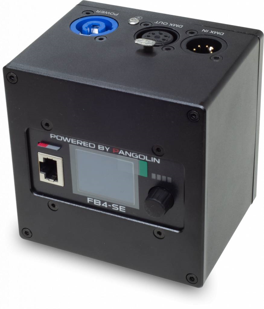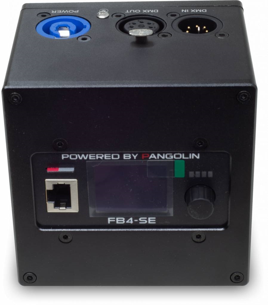 The Laserworld FB4 MAX Interface is a network interface, which runs with Pangolin Quickshow or Pangolin BEYOND. Pangolin Quickshow is included. It has an SD memory to store content on that can be triggered by DMX or ArtNET or be run in Stand-Alone mode.