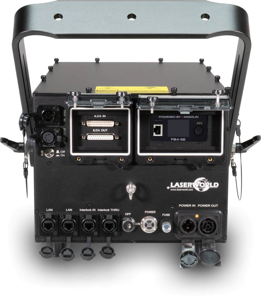 The show laser has an internal PSU for easy handling. Via the internal FB4 interface, the Laserworld PL-30.000RGB FB4 IP65 offers various control options, including DMX, ArtNet as well as direct computer control via network (QuickShow software or BEYOND software required).