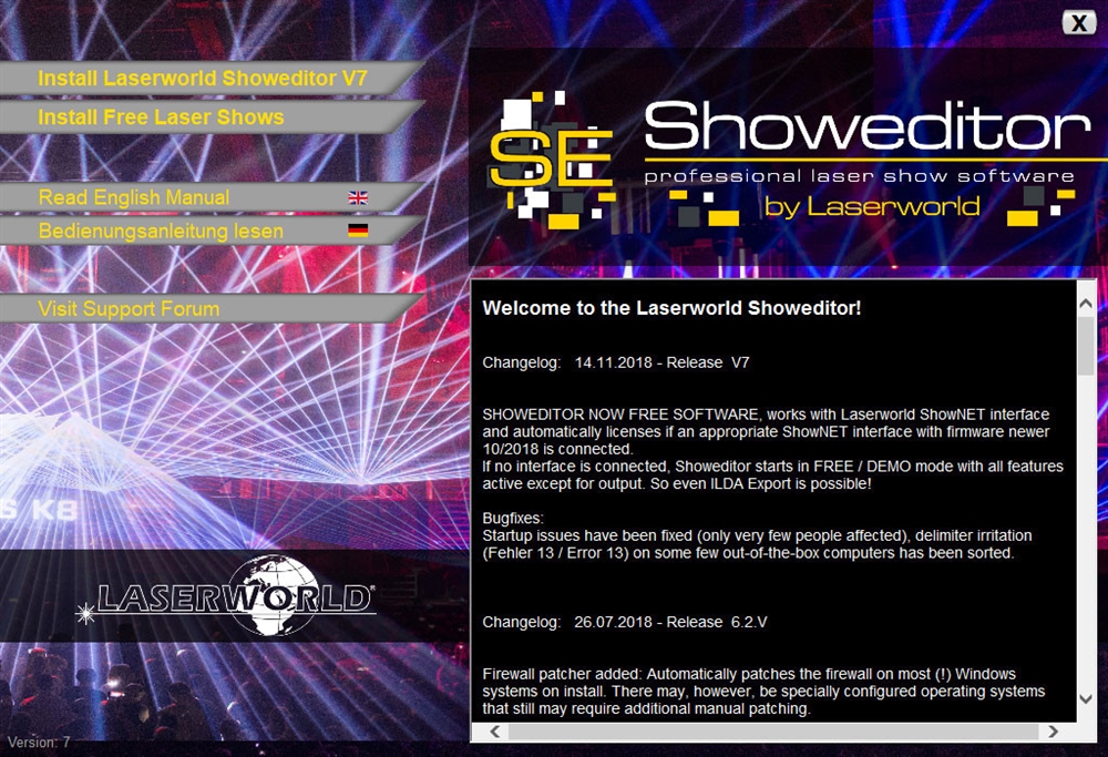Laserworld ShowNET-interfacet er fuldt kompatibelt med den professionelle Laserworld Showeditor lasershowstyringssoftware. Softwaren kan downloades gratis på Showeditor-hjemmesiden: https://www.showeditor.com