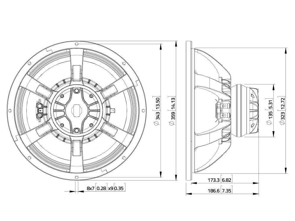Her er du: Disconetto » Brands » LAVOCE LAVOCE CAN143.00T 13.5" Coaxial Speaker, Neodymium, Aluminium Basket På lager På lager, 3-5 hverdage Bedømmelse for LAVOCE CAN143.00T 13.5" Coaxial Speaker, Neodymium, Aluminium BasketProduktet er endnu ikke bedømt 5.119,00DKK ved 1 stk. Vis uden moms Trustpilot 400/80 W AES, 8 ohms LF/HF, 99/105,5 dB, 45-3500 Hz/600-18000 Hz LAVOCE CAN143.00T 13.5" Coaxial Speaker, Neodymium, Aluminium Basket 400/80 W AES, 8 ohms LF/HF, 99/105,5 dB, 45-3500 Hz/600-18000 HzFor further information about this product, please refer to the Data Sheet under "Downloads"Package contents1 x speaker Power:Program: 800W LFRated: 80W AES HFRated: 400W AES LFProgram: 160W HFFrequency range:45 - 3500 Hz600 - 18000 HzSensitivity:99 dB LF; 105,5 dB HFImpedance:8 ohms LF; 8 ohms HFSpeaker:Woofer (13.5") approx. 34 cm with shared neodymium magnet with dual demodulating ringsBasket material: aluminumVoice coil lows (3") approx. 8 cmDiaphragmmaterial: TitaniumCompression tweeter highs (1.4") approx. 3.6 cmVoice coil compression tweeter highs (3") approx. 8 cmWeight:5,20 kg Varenr.: E-12603018