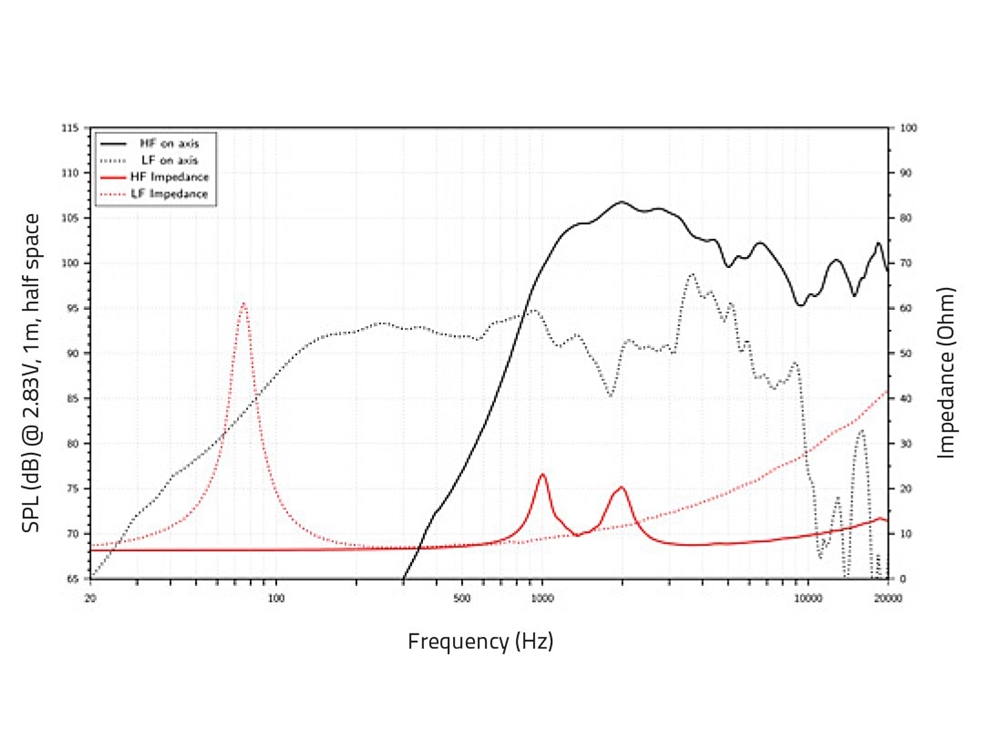 Her er du: Disconetto » LYD » Højttalere » Højttaler enheder » LAVOCE LAVOCE CSF082.00K 8" Coaxial Speaker, Ferrite, Steel Basked På lager På lager, 3-5 hverdage Bedømmelse for LAVOCE CSF082.00K 8" Coaxial Speaker, Ferrite, Steel BaskedProduktet er endnu ikke bedømt 1.239,00DKK ved 1 stk. Vis uden moms Trustpilot 200/35 W AES, 8 ohms LF/HF, 96/103,5 dB, 75-5500 Hz/1500-20000 Hz LAVOCE CSF082.00K 8" Coaxial Speaker, Ferrite, Steel Basked 200/35 W AES, 8 ohms LF/HF, 96/103,5 dB, 75-5500 Hz/1500-20000 HzFor further information about this product, please refer to the Data Sheet under "Downloads" Power:Program: 400W LFRated: 35W AES HFRated: 200W AES LFProgram: 70W HFFrequency range:75 - 5500 Hz LF1500 - 20000 Hz HFSensitivity:96 dB LF; 103,5 dB HFImpedance:8 ohms LF; 8 ohms HFSpeaker:Woofer (8") approx. 20 cm with shared ferrit magnet with dual demodulating ringsBasket material: aluminumVoice coil lows (2") approx. 5 cmDiaphragmmaterial: PolymideCompression tweeter highs (1") approx. 2.5 cmVoice coil compression tweeter highs (1.4") approx. 3.6 cmWeight:3 kg Varenr.: E-12603020 Kunder købte også LAVOCE CSF061.21 6.5" Coaxial Ferrite-Neodymium Magnet Steel Basket Driver DKK 369,00