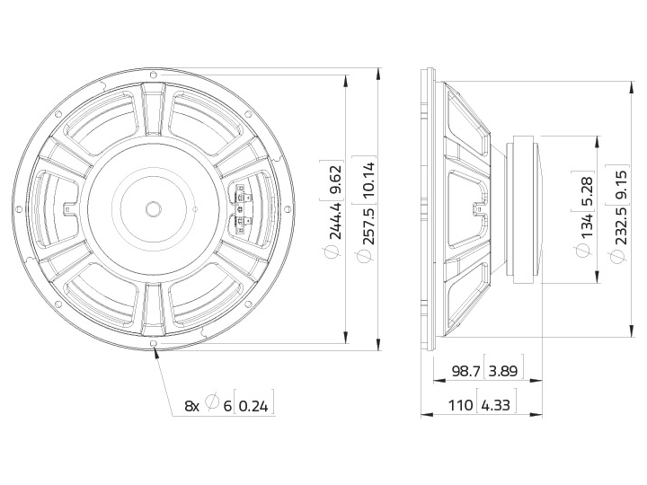 Her er du: Disconetto » LYD » Højttalere » Højttaler enheder » LAVOCE LAVOCE FBASS10-18 10" Bass Guitar Woofer Ferrite Magnet Steel Basket Driver På lager På lager, 3-5 hverdage Bedømmelse for LAVOCE FBASS10-18 10" Bass Guitar Woofer Ferrite Magnet Steel Basket DriverProduktet er endnu ikke bedømt 609,00DKK ved 1 stk. Vis uden moms Trustpilot 150 W AES, 8 ohms, 96 dB, 55-5200 Hz 150 W AES, 8 ohms, 96 dB, 55-5200 HzExperienced Italian R&D team with outstanding technical know-howInnovation-driven cultureSuperb and elegant Italian mechanical & aesthetical designStrictest standards and tools in testing and validationModern and efficient production system with a carefully balanced level of automationTotal Quality Management systemEfficient logisticsISO 9001 certification Rated power:150 W AESProgram power:300 WFrequency range:55 - 5200 HzSensitivity:96 dBImpedance:8 OhmSpeakers:woofer (10") approx 25 cm with Ferritmagnetbasket material SteelVoice coil lows (1.75") approx 4.5 cmWeight:3.10 kg Varenr.: E-12603210