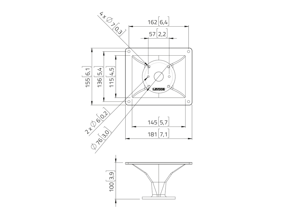 90° x 60° beam angle, 181 mm x 155 mm