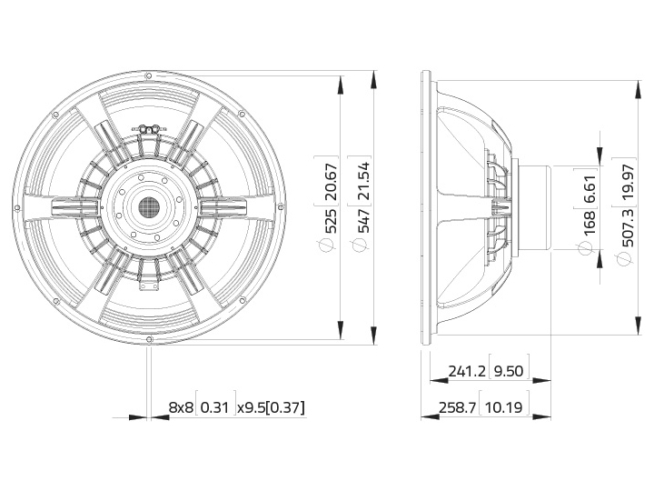 1700 W AES, 8 ohms, 98.5 dB, 30-1000 Hz