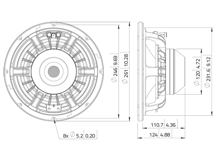 Her er du: Disconetto » LYD » Højttalere » Højttaler enheder » LAVOCE LAVOCE WAN102.50 10" Woofer Neodymium Magnet Aluminium Basket Driver På lager På lager, 3-5 hverdage Bedømmelse for LAVOCE WAN102.50 10" Woofer Neodymium Magnet Aluminium Basket DriverProduktet er endnu ikke bedømt 1.729,00DKK ved 1 stk. Vis uden moms Trustpilot 300 W AES, 8 ohms, 97 dB, 75-4500 Hz 300 W AES, 8 ohms, 97 dB, 75-4500 HzExperienced Italian R&D team with outstanding technical know-howInnovation-driven cultureSuperb and elegant Italian mechanical & aesthetical designStrictest standards and tools in testing and validationModern and efficient production system with a carefully balanced level of automationTotal Quality Management systemEfficient logisticsISO 9001 certification Rated power:300 W AESProgram power:600 WFrequency range:75 - 4500 HzSensitivity:97 dBImpedance:8 OhmSpeakers:woofer (10") approx 25 cm with Neodymiummagnetbasket material AluminumVoice coil lows (2.5") approx. 6.35 cmWeight:2.70 kg Varenr.: E-12602615