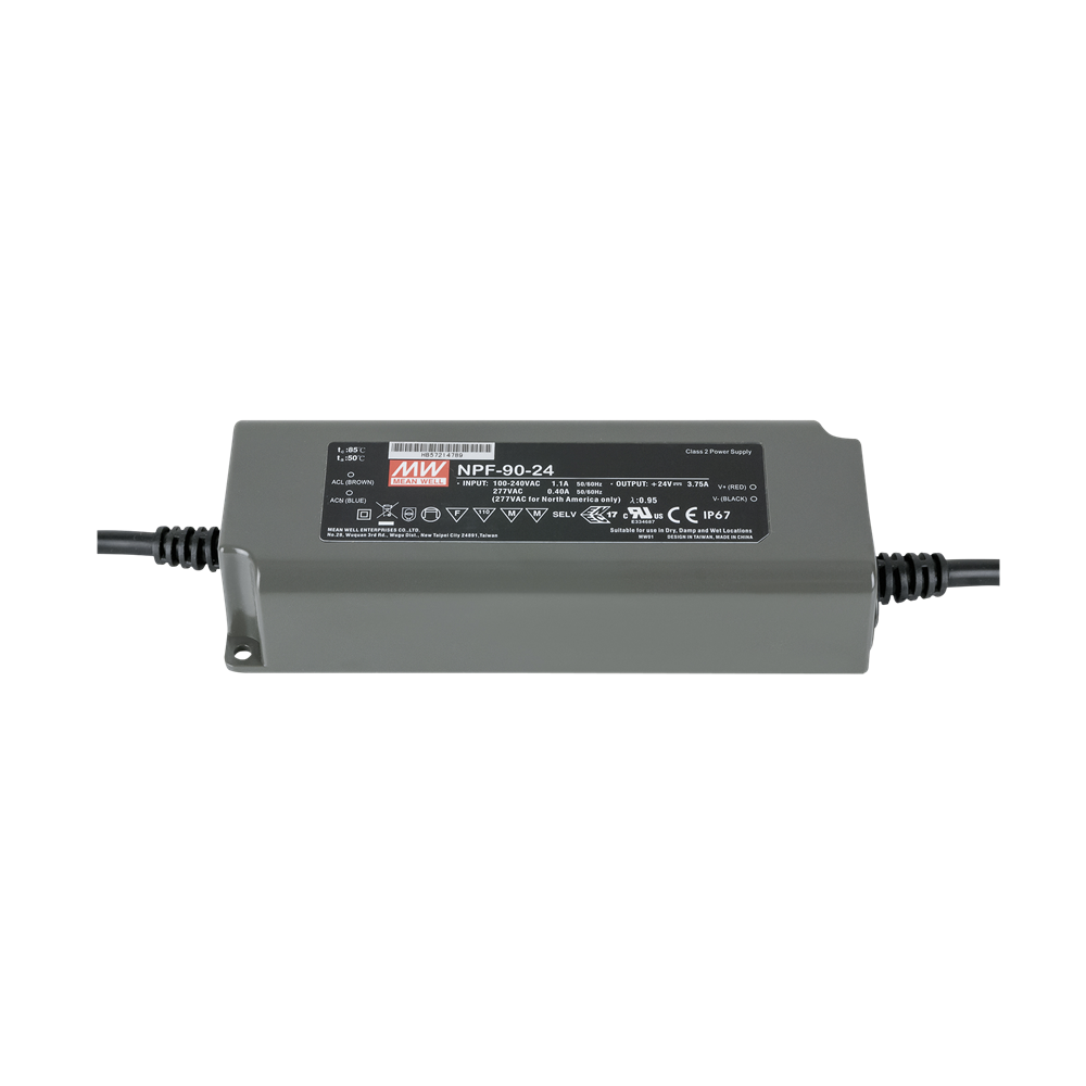 Med en indgangsspænding på 90-305 Volt AC og en udgangsspænding på 24 VDC, har denne strømforsyning et effektforbrug op til 90 W.