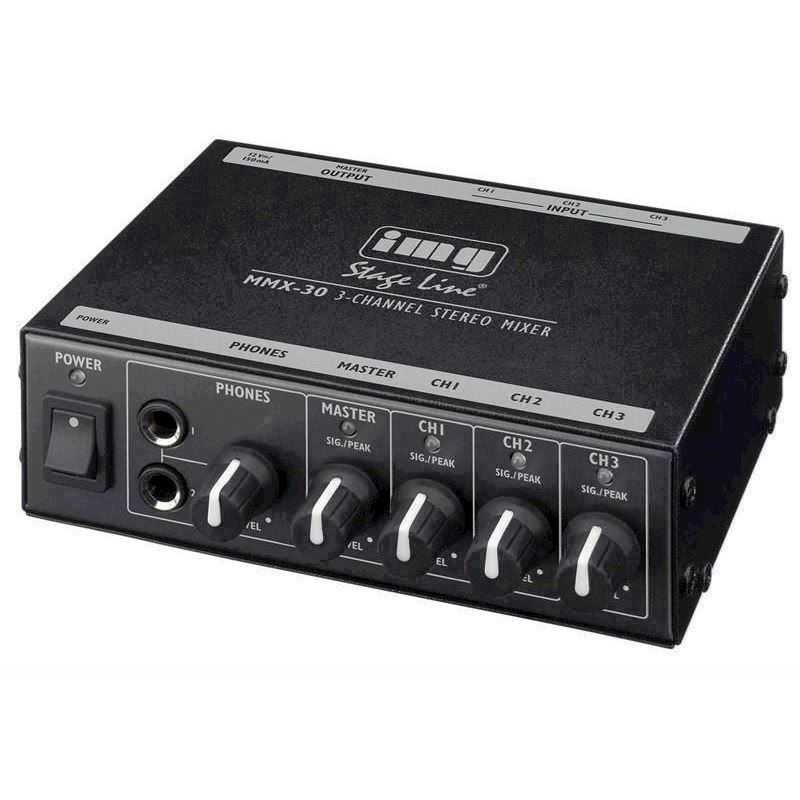 Her er du: Disconetto » LYD » Mixere » Mini mixer Line-mixer 3 kanals - MMX-30 - IMG STAGE LINE På lager På lager, 2-4 dage Bedømmelse for Line-mixer 3 kanals - MMX-30 - IMG STAGE LINEProduktet er endnu ikke bedømt 729,00DKK ved 1 stk. Vis uden moms Trustpilot Kompakt 3-kanal stereo line mixer Kompakt 3-kanals stereo line-mixer 3 stereoindgange med volumen 1 justerbar stereo master udgang RCA ind- og udgange 2 stereo hovedtelefonudgange med fælles volumenkontrol Signal/peak LED-indikator for indgange og peak LED for udgangen No. of channels3No. of inputs3Mic input-Line input40 mV, 3 x RCA L/RCD input-Phono input-Tape (play)-Aux input-Insert input-Effect return-Master output4 V, 1 x RCA L/RRecord output-Monitor output-Booth output-Aux output-Insert output-Effect send-Control room-Tape (rec)-Headphones2 x 10 mW/2 x 32 Ω, 2 x 6.3 mm jackGooseneck lamp-WiFi-USB-Frequency range5-30,000 HzTHD< 0.1%S/N ratio> 66 dBCrosstalk-Equalizer bass-Equalizer midrange-Equalizer treble-equalizer-Talkover-Phantom power-Crossfader-Media player-Amplifier-Power supplyvia encl.plug-in power supplyMains voltage-Mains frequency-Power consumption, operation-Operating voltage (possible alternative)-Power supply (possible alternative)-Admiss. ambient temp.0-40 °CWidth147 mmHeight50 mmDepth119 mmRack spaces, RS-Weight693 g Varenr.: 252540 Vi anbefaler Phono-jack kabel 1.2m - ACA-1635 DKK 42,00 Jack-phono kabel 1.5 meter. - MCA-154 DKK 63,00 Phonokabel 1.8m - AC-122 - MONACOR DKK 56,00 Kunder købte også Phono-jack kabel 1.2m - ACA-1635 DKK 42,00 Mini jack stero forlænger, 6 meter, mec-635 DKK 77,00 Jack adaptor til Phono bøsning - NTA-175 DKK 35,00