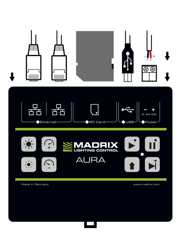 - The compact and energy-efficient device plays back light shows and effects from SD card