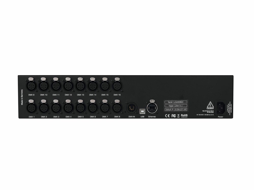 | Ethernet (Art-Net): | RJ45, 10/100 MBit/s, Auto MDI-X, NEUTRIK etherCON |