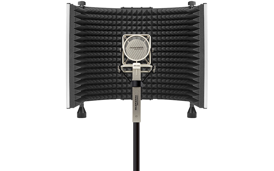 Sound Shield is a professional vocal reflection filter perfectly sized for any studio space. It shields the recording microphone from those distracting acoustic artifacts, creating a cleaner, more focused, more intelligible recording. Sound Shield has five absorptive walls (three stationary, two foldable) consisting of sculpted sound-absorptive surfaces, backed by high-density EVA foam for additional sound attenuation. It can be custom-shaped around the microphone to create a very focused, precise recording in any environment.
