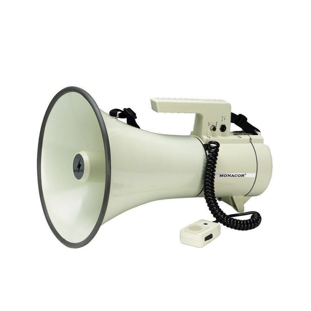 Med vores udvalg af pålidelige megafoner tilbyder vi den perfekte løsning til enhver situation. Nogle få udvælgelseskriterier vil hjælpe dig til at vælge det rette produkt. Rækkevidden er ganske givet det vigtigste. Her gælder følgende: med stigende lydtryk (i dB) øges også megafonens rækkevide. Du kan vælge mellem megafoner med indbygget mikrofon, med håndholdt mikrofon eller med trådløs mikrofon. Alle MONACOR megafoner benytter almindelige batterier. Derudover kan der til enkelte modeller tilsluttes en 12 V strømforsyning. Størrelse, vægt og strømforsyning er andre kriterier, der lægges til grund ved valg af megafon. Med disse sammenligningskriterier vil du ganske givet hurtigt finde den ideelle megafon, som opfylder dine krav.