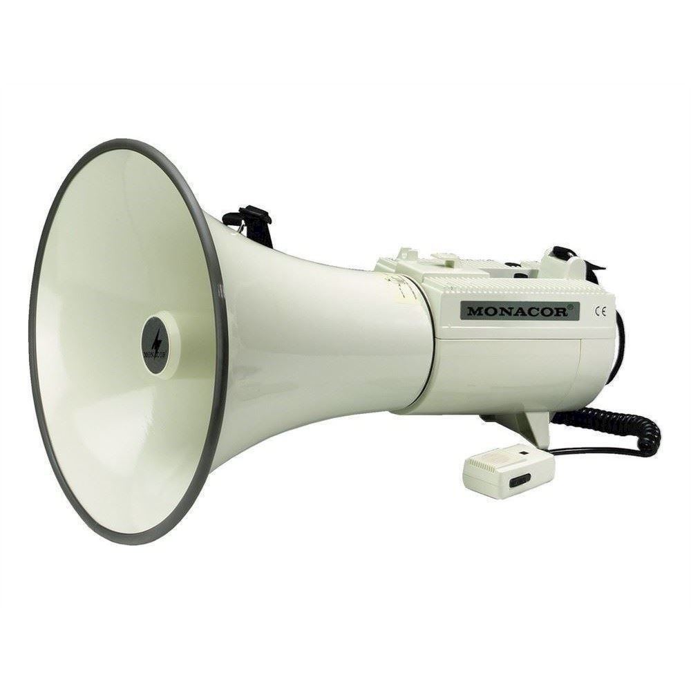 With our range of reliable megaphones, we provide the perfect solution for each application. A few basic selection criteria will help you to choose the right unit. The operating range surely is the most important one. Here, the following applies: with increasing sound pressure (in dB), the operating range of the megaphone increases, too. Furthermore, it is possible to choose between megaphones with integrated microphone, with hand-held microphone or units with an additional wireless microphone. Each megaphone from MONACOR is supplied with power by standard batteries. As an alternative, a few units also feature a 12 V connection. Size, weight and power supply are further selection criteria for choosing the right megaphone. With these comparison criteria, you will surely find the ideal megaphone meeting your individual requirements very quickly.