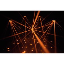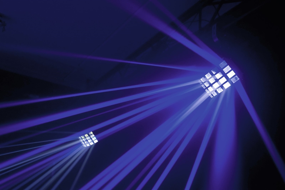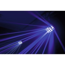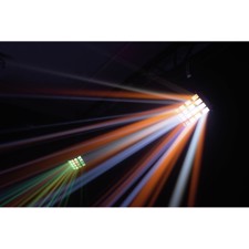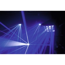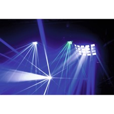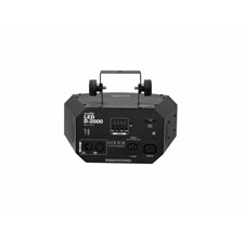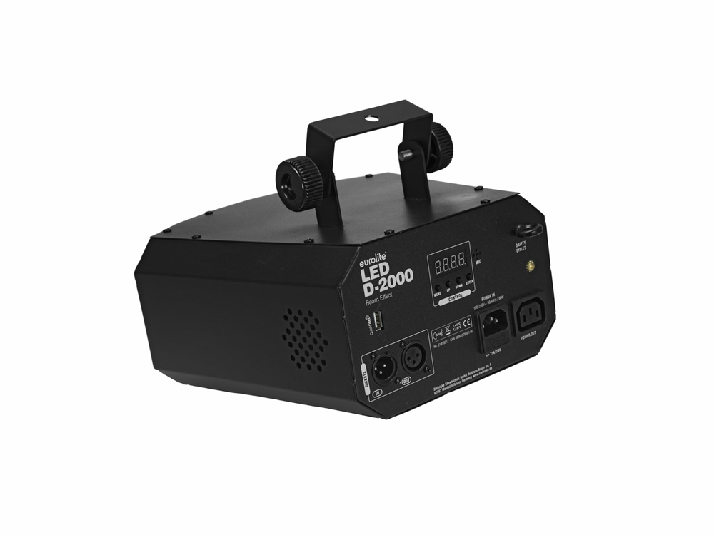 Den LED D-2000 Beam-effekt fra Eurolite er udstyret med 5 high-performance 10-watt LED'er i farverne rød, grøn, blå, rav og hvid, der skaber dynamiske stroboskop- og derbyeffekter. LED D-2000 fungerer med 3 forudindstillede programmer. I automatisk tilstand afspilles de forudindstillede lysprogrammer fuldt automatiske uden yderligere justeringer fra din side. Alternativt kan du vælge lydstyret tilstand via det indbyggede mikrofon med justerbar følsomhed. Du kan også betjene flere enheder synkront ved hjælp af master/slave-tilstanden. Udover de forudindstillede programmer kan LED D-2000 også styres via 5 eller 9 DMX-kanaler. Til adressering og indstillinger (såsom farvevalg for 15 blandede farver, farveskift, fade-effekter eller dimmer-effekter) kan du enten bruge det 4-cifrede LED-display og betjeningsknapper på bagsiden af enheden eller den medfølgende IR-fjernbetjening. Hvad mere er, er LED D-2000 kompatibel med QuickDMX, det trådløse DMX-system fra Eurolite. En phantom-forsynet USB-port til trådløs transmission af DMX-signalet gennem en QuickDMX-modtager kan findes på bagsiden af enheden.