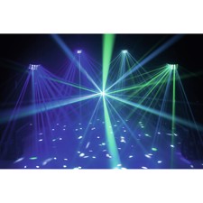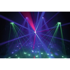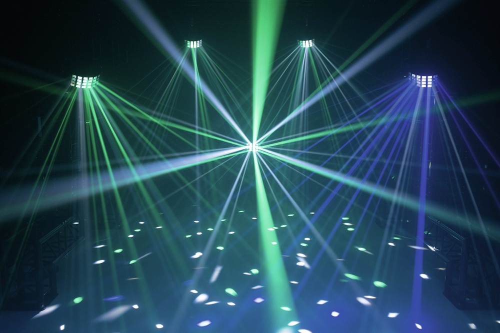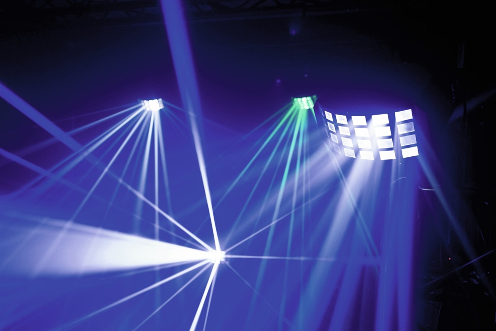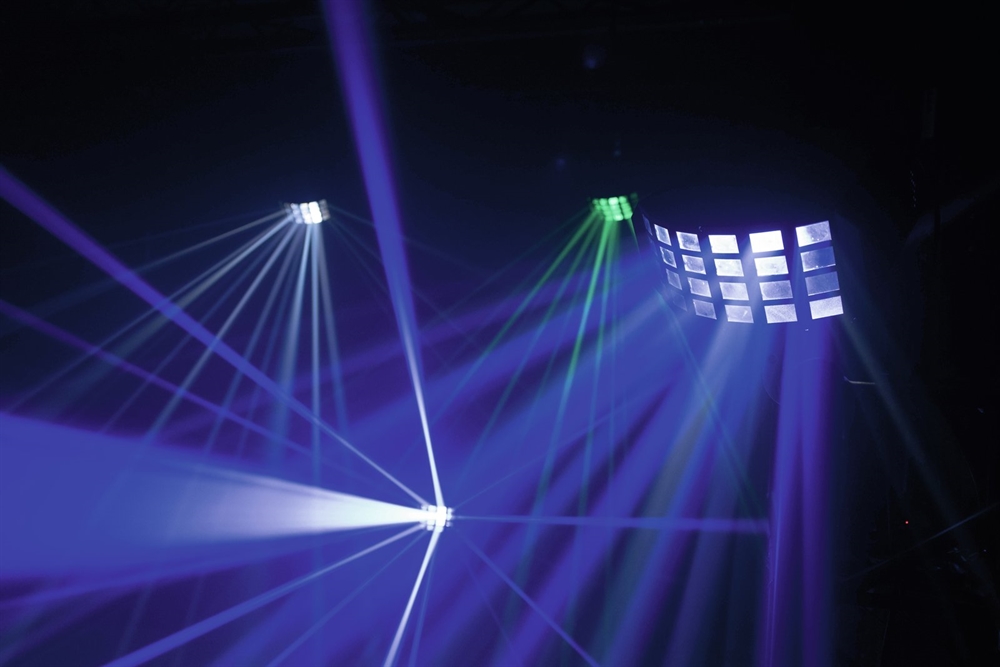 - De farverige stråler ændrer retning ved hver basbeat i lydstyret tilstand