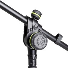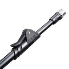 The boom hub features precision 2-point tilt and position adjustment of the telescoping boom arm. A quick-release adjuster enables variable extension to a maximum length of 88 cm, facilitating flexible microphone placement. The smooth yet robust height adjustment grip and screw knobs of the MS 4322 are made from highly durable ABS with a non-slip, soft-touch thermoplastic coating for comfortable use. The custom-designed retainer requires no tools for quick and secure microphone clip attachment.