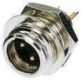 3 pole TINY xlr male chassis connector, nickel housing, gold plated contacts, max. panel thickness: 6 mm