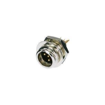 5 pole TINY xlr male chassis connector, nickel housing, gold plated contacts, max. panel thickness: 6 mm