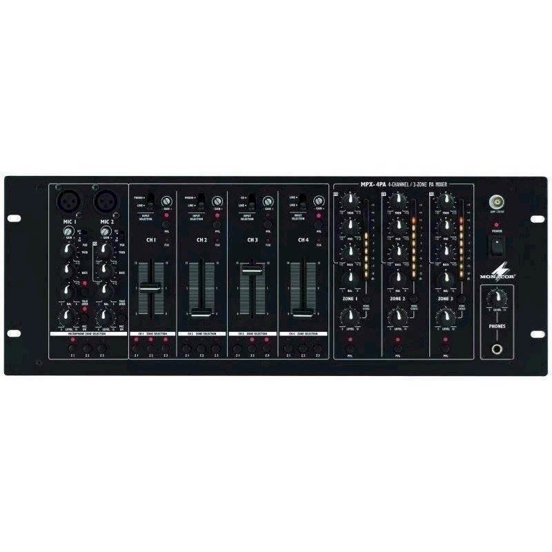 Her er du: Disconetto » LYD » Mixere » Zone Mixer Mixer - MPX-4PA - MONACOR På lager På lager, 2-4 dage Bedømmelse for Mixer - MPX-4PA - MONACORProduktet er endnu ikke bedømt 2.809,00DKK ved 1 stk. Vis uden moms Trustpilot 3-zone mixer med routing facilitet i alle input kanaler som ønsket med XLR og RCA zone udgange 6 indgangskanaler 3-zone mixer 3 zoner med mulighed for routing af alle indgange XLR og RCA zoneudgange 6 indgange (4 stereoindgange, 2 mikrofonindgange) Mikrofonindgangene kan kun routes sammen Forsænket gain for hver indgang Mikrofonindgange, med 2-vejs tonekontrol, talkover og PAD omskifter Stereoindgange 2 x phono/line og 2 x line/line Zoneudgange, hver med 3-vejs equalizer, LED level display til stereo master, balance, pre-fader listening (PFL) og mono/stereo omskifter Justerbar hovedtelefonudgang med pre-fader listening (PFL) til stereoindgange og zoneudgange Tilslutning for svanehalslampe GNL-204 eller GNL-205 No. of channels6No. of inputs12Mic input1.5 mV, 2 x 6.3 mm jackLine input150 mV, 5 x RCA L/RCD input150 mV, 1 x RCA L/RPhono input3 mV, 2 x RCA L/RTape (play)-Aux input-Insert input-Effect return-Master output1 V/600 Ω, 3 x 3-pole XLR L/R,3 x RCA L/RRecord output-Monitor output-Booth output-Aux output-Insert output-Effect send-Control room-Tape (rec)-Headphones≥ 8 Ω, 1 x 6.3 mm jackGooseneck lamp12 V/0.75 W, 1 x BNCWiFi-USB-Frequency range20-20,000 HzTHD0.1%S/N ratio61 dB, unweightedCrosstalk-Equalizer bass+12 dB, -12 dB/50 HzEqualizer midrange+12 dB, -12 dB/1 kHzEqualizer treble+12 dB, -12 dB/10 kHzequalizer-Talkover-16 dBPhantom power-Crossfader-Media player-Amplifier-Power supply∼ 230 V/50 Hz/20 VAMains voltage∼ 230 VMains frequency50 HzPower consumption, operation20 VAOperating voltage (possible alternative)-Power supply (possible alternative)-Admiss. ambient temp.0-40 °CWidth482 mmHeight177 mmDepth105 mmRack spaces, RS4Weight4 kg Varenr.: 202070 Vi anbefaler Digital PA-forstærker 4x50W - PA-1450D MONACOR DKK 4.639,00 Trådløs mikrofonsæt - TXS-611SET - IMG STAGE LINE DKK 1.869,00 Stel skilletrafo - FGA-30M DKK 177,00 IMG Stageline - STA-1506, 6 kanals PA-forstærker DKK 5.809,00 IMG Stageline - STA-1508, 8 kanals PA-forstærker DKK 6.559,00 Line/Phono Adaptor - LPC-1 DKK 449,00 PA-forstærker - PA-4120 - MONACOR DKK 8.909,00 Svanehalsmikrofon - DMG-450 - IMG STAGE LINE DKK 389,00 Kunder købte også Svanehalsmikrofon - DMG-450 - IMG STAGE LINE DKK 389,00 Mikrofon/ signal kabel. XLR-XLR "Best Buy" 10 meter DKK 129,00 Signalkabel. 2 x XLR hun - 2 x phono. 6 meter DKK 96,95