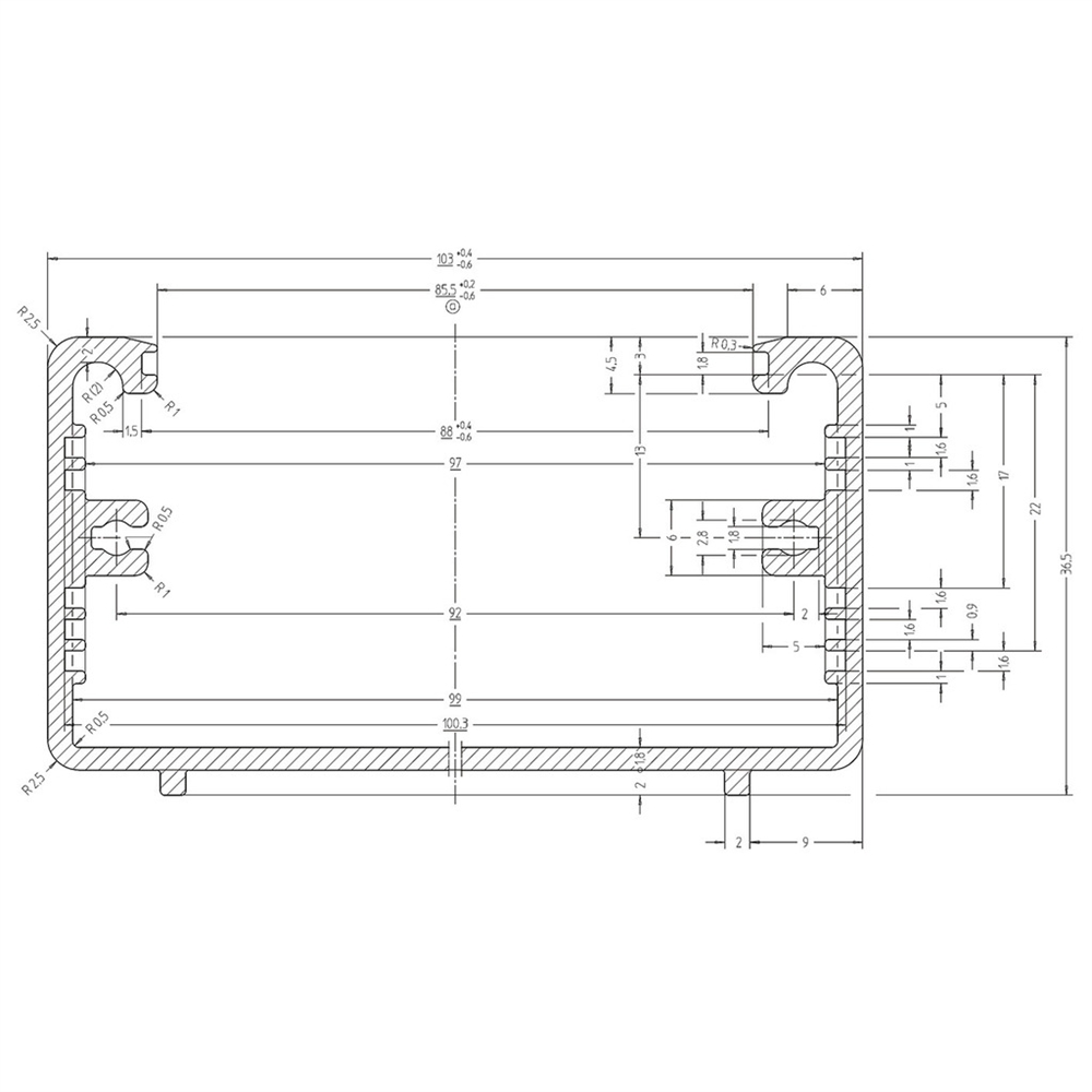 Her er du: Disconetto » TILBEHØR » Elektronikdele » Kabinetter & kasser Monteringskasse - AH-101/SW - MONACOR På lager På lager, 2-4 dage Bedømmelse for Monteringskasse - AH-101/SW - MONACORProduktet er endnu ikke bedømt 177,00DKK ved 1 stk. Vis uden moms Trustpilot Series of utility cases. Series of Utility CasesMade of extruded profile with insertion grooves for printed circuits in different heights (12/17/22 mm distance to the front panel)Exchangeable front panel with protective foil of 1.5 mm aluminium plateMat black ABS plastic side coversMaterial surface is anodised and mat etched or black (SW)Total height: 36.5 mm Intended usecaseMaterialaluminium sheet, ABS plastic, blackDimensions103 x 36.5 x 107 mmWidth103 mmHeight36.5 mmLength107 mmPCB dimensions100 x 100 mmWeight159 g Varenr.: 333040 Kunder købte også Monteringskasse - AH-102/SW - MONACOR DKK 224,00