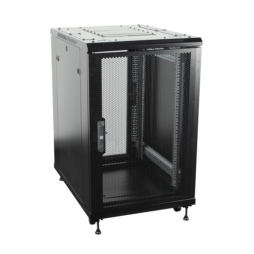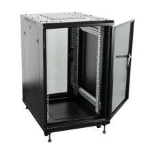 Netværksskab med glasdør RCA-FSM-18 er et aflåseligt 19" netværksskab med en rackenhedshøjde på 18 (800 mm). Den leveres med både drejehjul og gummifødder. Du kan vælge mellem begge muligheder, hvilket gør den egnet til både mobile og faste applikationer. Dette netværksskab kan åbnes på alle sider, da det har to aftagelige sidepaneler og en Gitter-dør foran og bag på enheden. Dette gør det nemt at installere og opdatere 19-tommers rack-udstyr.