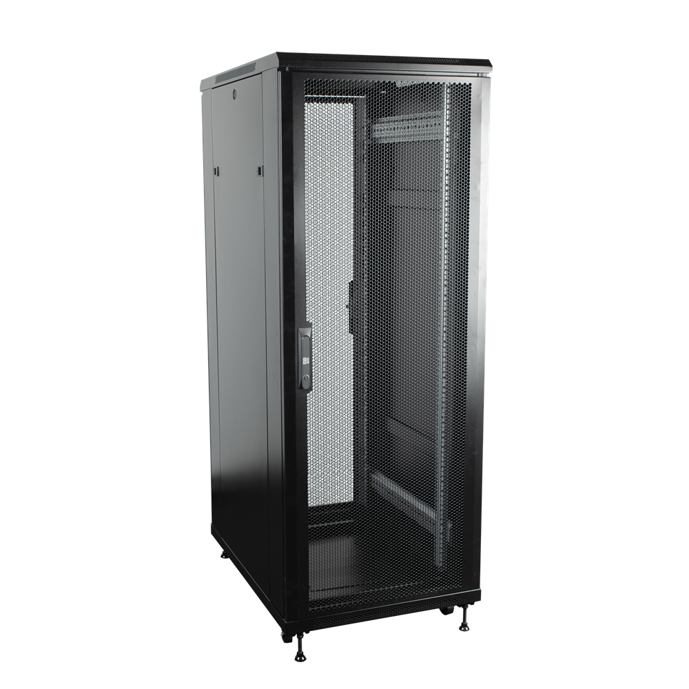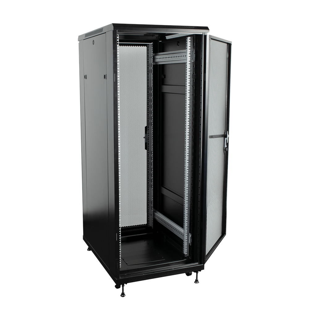 Netværksskab med glasdør RCA-FSM-32 er et låsbart 19" netværksskab med en 32 rackenheders højde (1422 mm). Det leveres med både drejehjul og gummifødder. Du kan vælge mellem begge muligheder, hvilket gør det passende til både mobile og faste applikationer. Dette netværksskab kan åbnes på alle sider, da det har to aftagelige sidepaneler og en gitterdør i både bag -og forsiden af enheden. Dette gør det nemt at installere og opdatere 19 tommer rackudstyr.