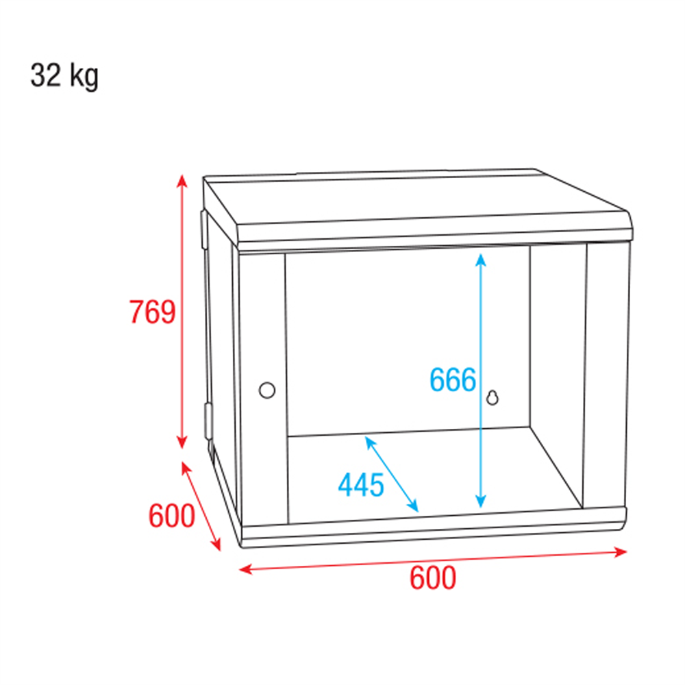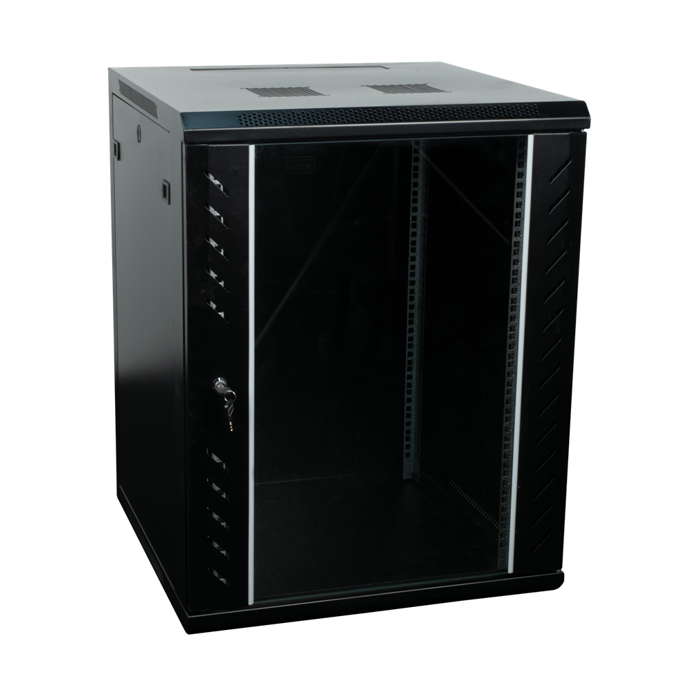 Netværksskab med glasdør RCA-WMF-15 er et låsbart 19" vægmonteret rackskab med en højde på 15 rackenheder og to ventilationsgitre, der er egnet til faste installationer. Dette sorte 19 tommer rackskab har en metalskab med glasplader og er kun til indendørs brug. RCA-WMF-15 leveres med et 19" installationskit, bolt & skive, møtrik, unbrakonøgle, nøgler og skruer.