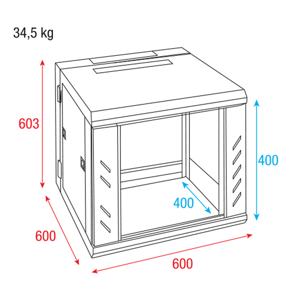 Netværksskab med glasdør RCA-WMH-9 er et aflåseligt 19" vægmonteret rack med en patchpanel dybde på 400 mm (15,8") og en højde på 9 rack enheder, passende til faste indendørs installationer. Udstyret med en hængsel ved bagpanelet og aftagelige sidepaneler, som gør det nemt for dig at arbejde ved tilslutningspanelerne fra siden eller bagenden af enheden. RCA-WMH-9 har en elegant og stærk plade stål dør med en hærdet glasfront til at holde og præstere over tid. Den leveres med et 19" installationskit, bolte & skiver, møtrik, unbrakonøgle, nøgler og skruer.
