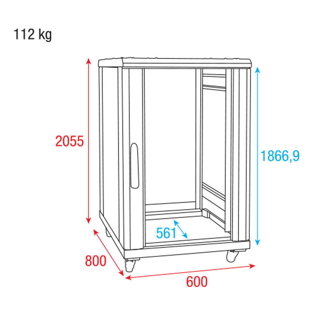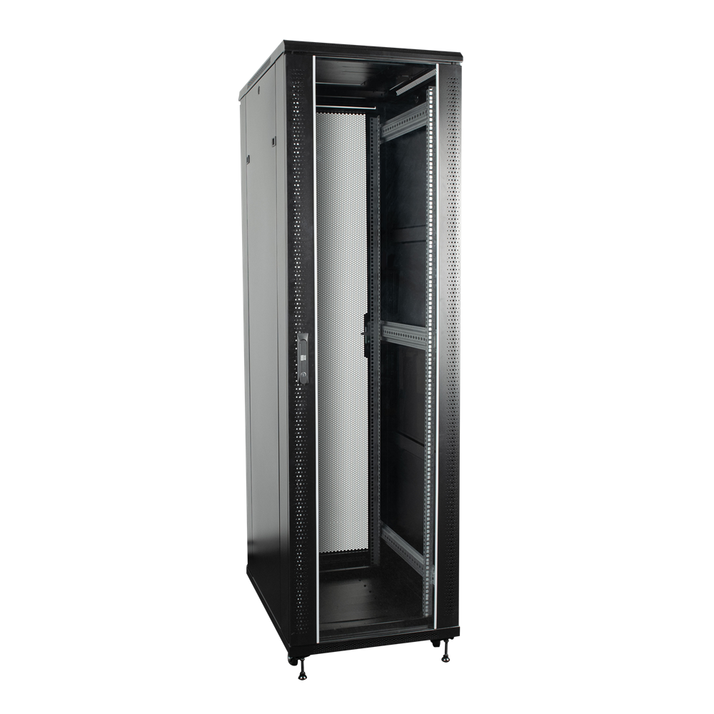 Netværksskab med glasdør RCA-FSG-42 er et låsbart 19" netværksskab med en 42 rackenheders højde (1867 mm). Det kommer med både roterende hjul og gummifødder. Du kan vælge mellem begge muligheder, hvilket gør det egnet til både mobile og faste anvendelser. Dette netværksskab kan åbnes på alle sider, da det har to aftagelige sidepaneler, en gitterdør på bagsiden og en glasdør på fronten af enheden. Dette gør det nemt at installere og opdatere 19-tommers rackudstyr.