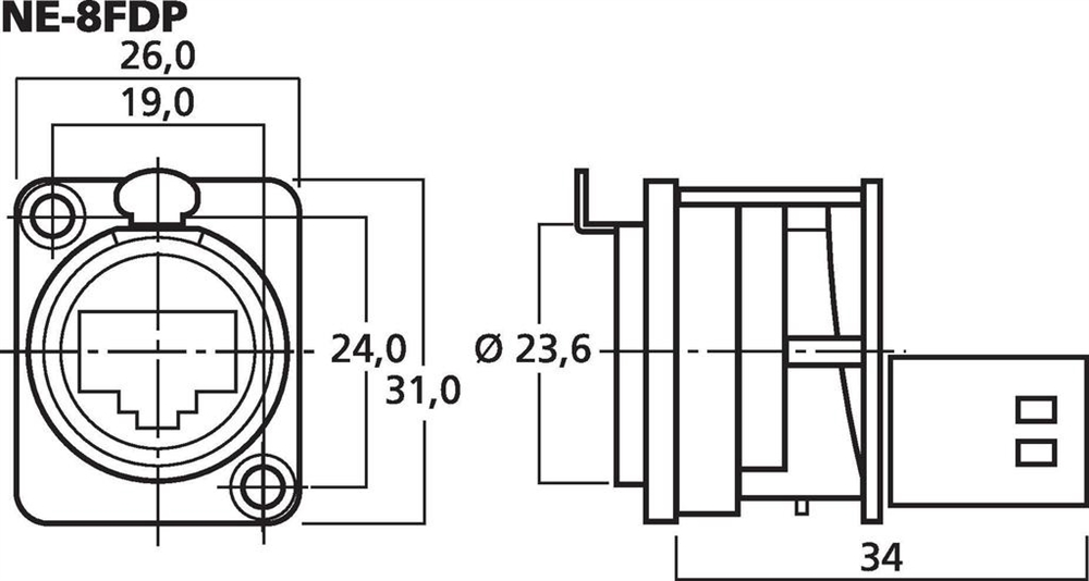 Her er du: Disconetto » Monacor » Stik & kabler » Bøsninger » Øvrige Neutrik EtherCon gnm.gangsstik - NE-8FDP På lager På lager, 2-4 dage Bedømmelse for Neutrik EtherCon gnm.gangsstik - NE-8FDPProduktet er endnu ikke bedømt 150,00DKK ved 1 stk. Vis uden moms Trustpilot EtherCon through-connection chassis jack, especially suitable for industrial use and Ethernet cabling on stage. RJ-45 jack with strain relief RJ-45 jack in patch version D-series standard Corresponds to EtherCon feed-through panel jacks, for industrial use and Ethernet cabling on stage.RJ45 jack with strain reliefRJ45 jack in patch versionD series standardComplies with Cat. 5 requirements according to TIA/EIA and ISO/IEC NE-8FDP = nickel-platedNE-8FDPB = black Typepanel jackTypeNEUTRIK EtherCon feed throughQuantity1Featuresstrain relief, patch version, Cat. 5 standardColour/colour codingnickel-platedPower rating-Insulating resistance-Dielectric strength-Certification-Pole number-Cable inlet-Suitable cable cross section-Connection2 x RJ-45Strain reliefyesCable bending protection-Stereo-Mono-Switches-MaterialmetalCentral fixing-Contact type-No. of contacts-Contact width-Contact distance-Admiss. ambient temp.-30 °C to +80 °CDimensions26 x 31 x 34 mmDiameter-Length-Weight0.024 kgOther featuresD series Varenr.: 346890 Vi anbefaler Neutrik dækplade til stikpanel DKK 14,00 Stikpanel til 8 D-size stik (XLR, Speakon, Powercon mv.). Stål. 1 unit DKK 103,00 Neutrik monteringsplader med M3 gevind DKK 6,00 Skruesæt - MZF-312/SW - IMG STAGE LINE DKK 56,00 Disconetto.dk@2018