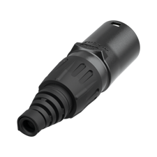 Kabelstikholder best?r af en sort kromskal og kabelaflastning.