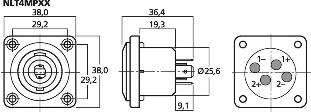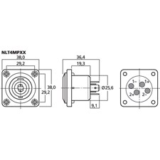 Series of Speakon connectors for professional speaker connection technology. Robust design, latching device, all-insulated contacts, cable inlet with self-adjusting clamps.