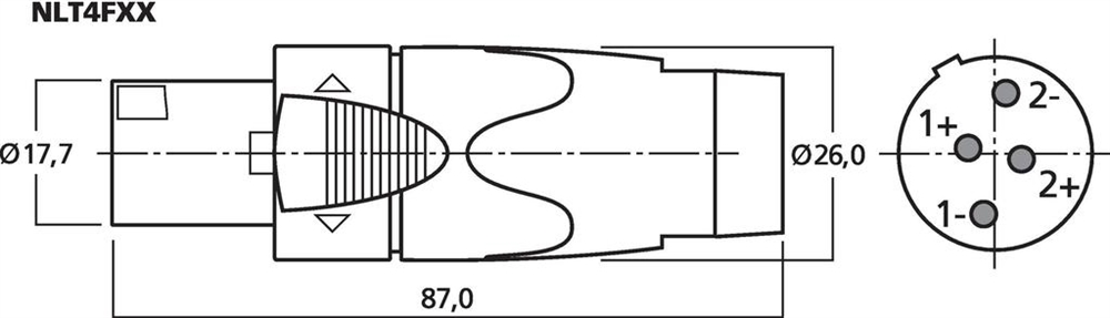 Series of Speakon connectors for professional speaker connection technology. Robust design, latching device, all-insulated contacts, cable inlet with self-adjusting clamps.