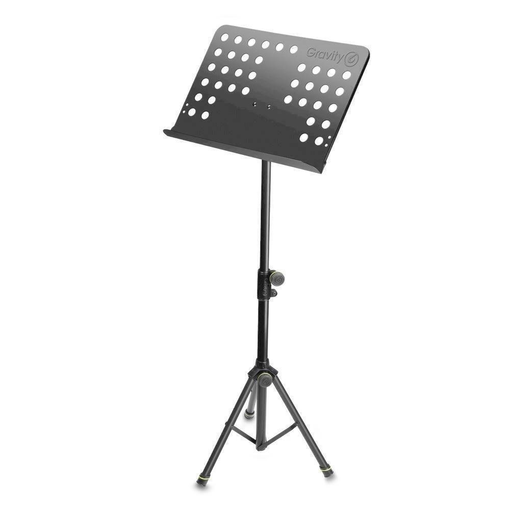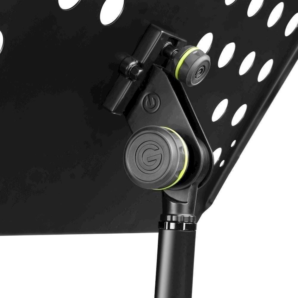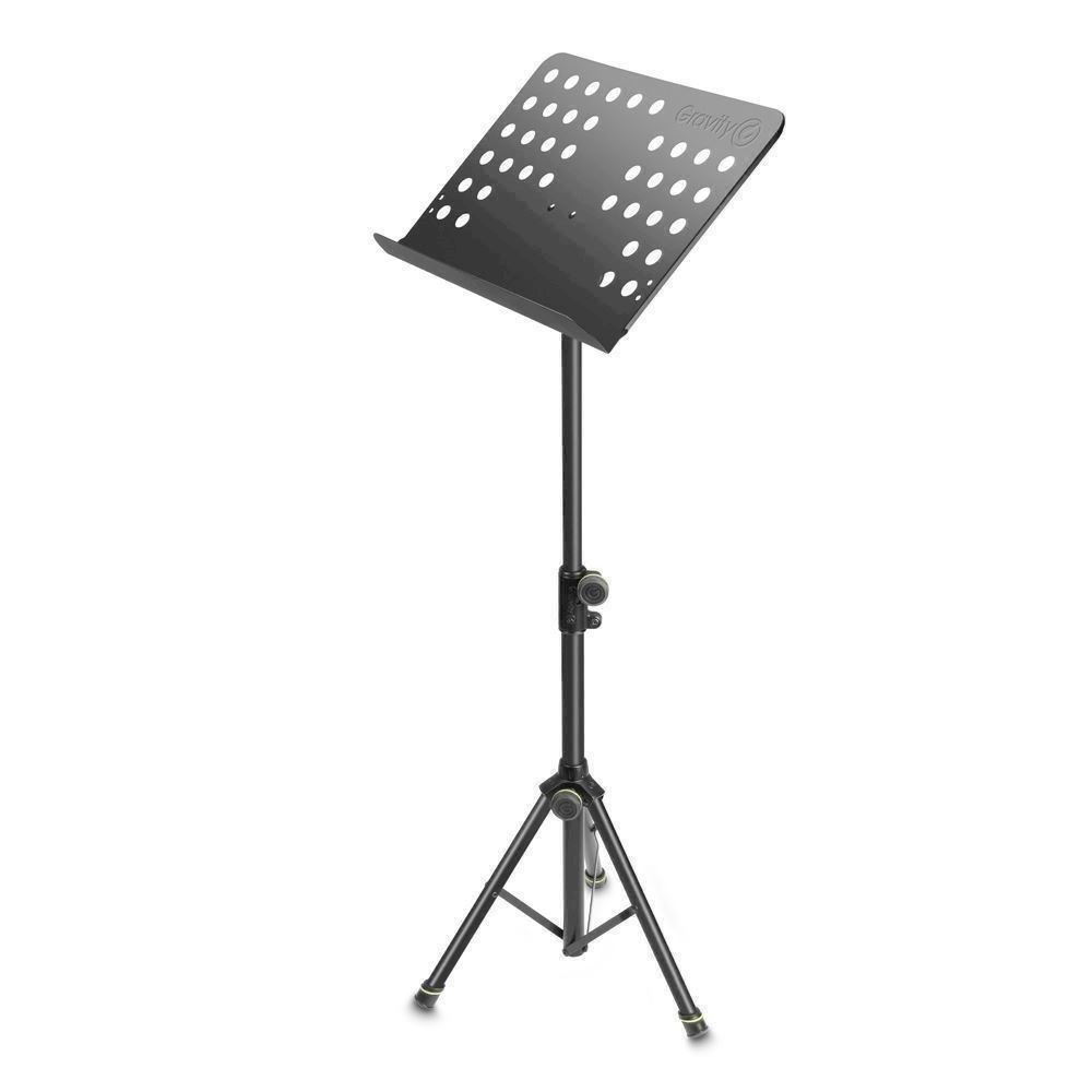 This music stand is based on a classic design. Attention was given to details such as the support joint which is made of die-cast material for a precise fit, the base connector and the height adjustment. Utilising the Gravity-typical ergonomic set screw knobs - made from high-grade ABS with a soft touch, non-slip thermoplastic coating and heavy duty metal joints, this stand is designed to withstand harsh treatment in the everyday life of a musician.
